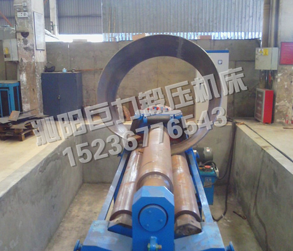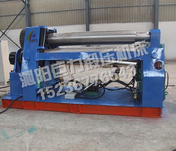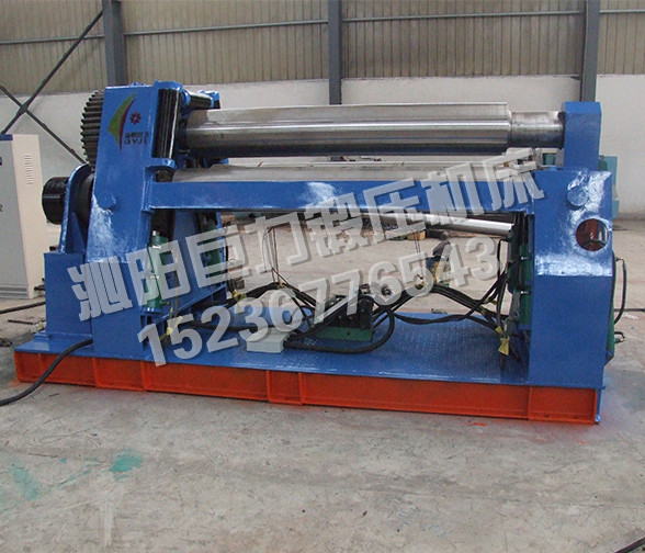 該機(jī)型的上輥固定,兩下輥呈傾斜狀做旋轉(zhuǎn)運(yùn)動,兩下輥可以同時升降,也可以單升單降,用以完成板材的端部預(yù)彎。