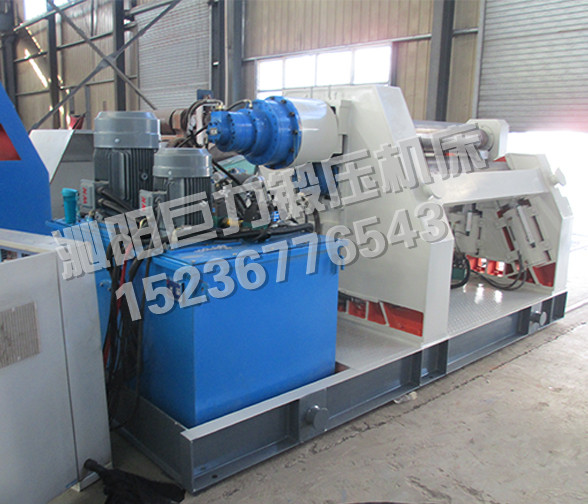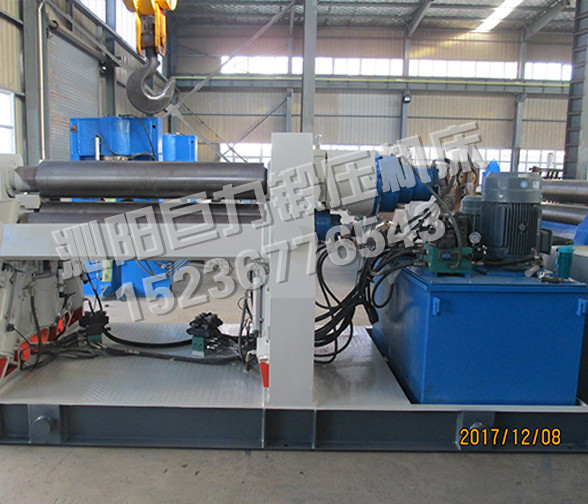該四輥卷板機(jī)與對稱三輥卷板機(jī)比較,它可以不借助其它設(shè)備模具,直接予彎板材端部,而且剩余直邊較??;它可以不使板材調(diào)頭,而卷成工件。