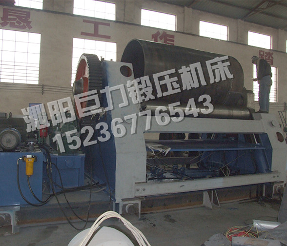 該四輥卷板機(jī)與對(duì)稱三輥卷板機(jī)比較,它可以不借助其它設(shè)備模具,直接予彎板材端部,而且剩余直邊較??;它可以不使板材調(diào)頭,而卷成工件。